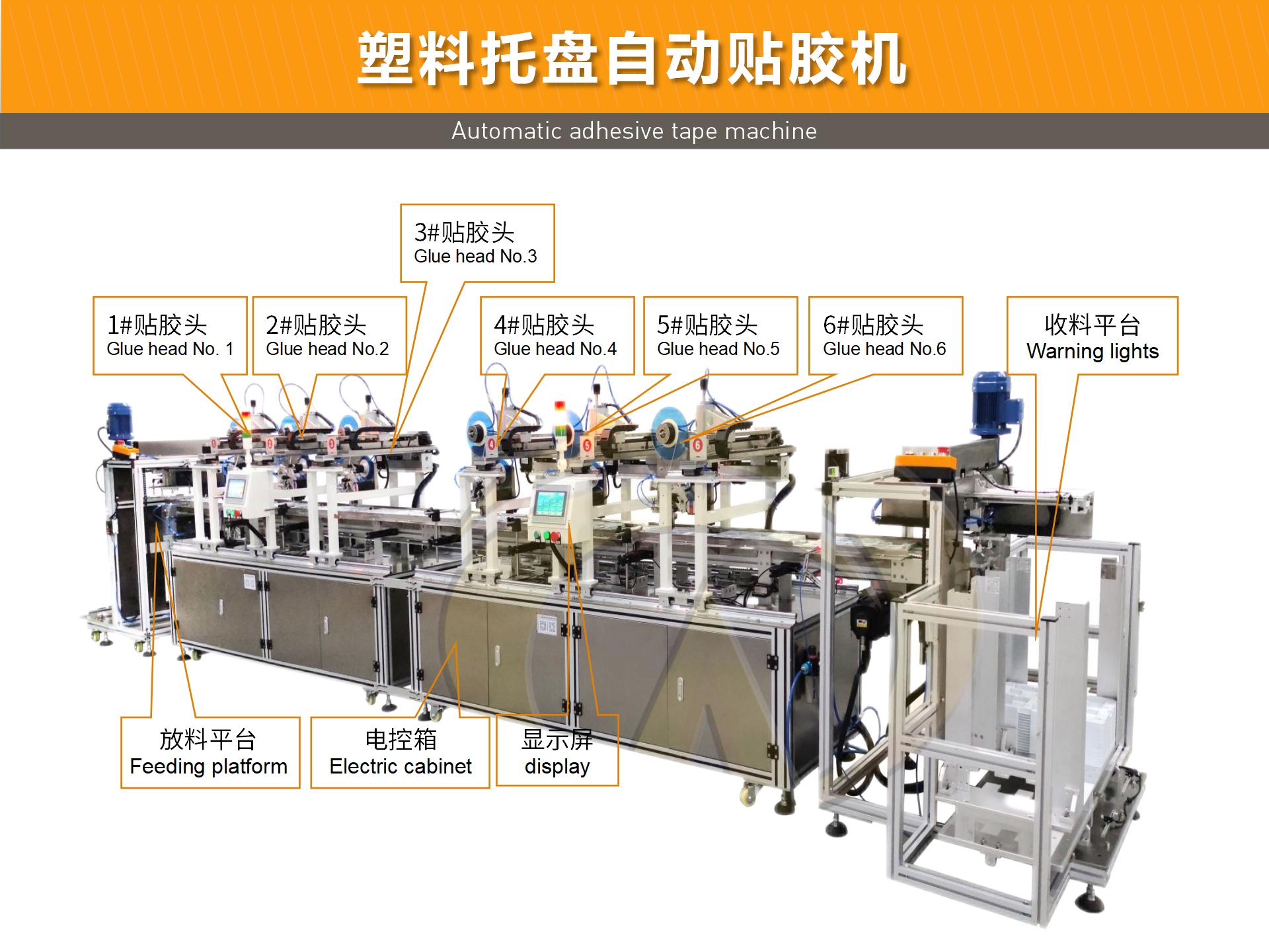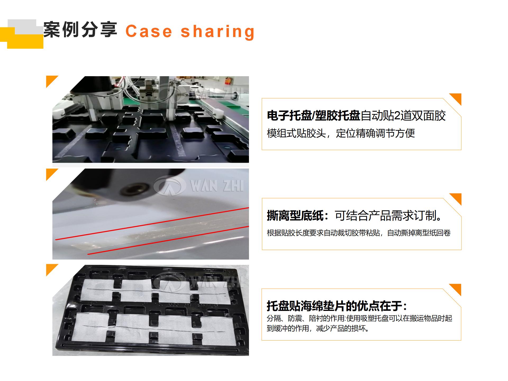 萬志自主研發的塑料托盤自動貼膠機,能滿足不同塑料托盤、電子托盤工廠自動貼雙面膠、貼海綿墊的需求。