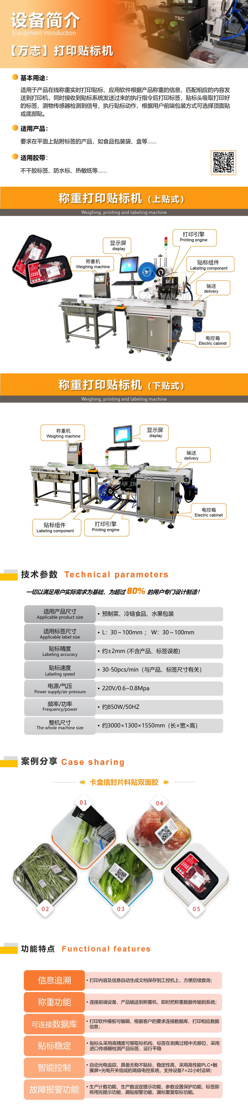 二、【萬志自動化】自動化貼標機,自動包袋稱重打印貼標機制造商,15年技術沉淀,榮獲業界良好口碑;支持現貨、非標定制貼標方案。物料內容即時打印貼標,廠家直銷, 0元試機,咨詢電話:400-8860-822。