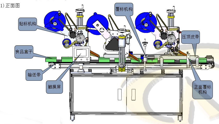 人工把食品盒子放到貼標機輸送帶上即可,機器自動完成食品盒子的輸送,導(dǎo)正,定位,貼標,覆標動作,人工再把成品取下。