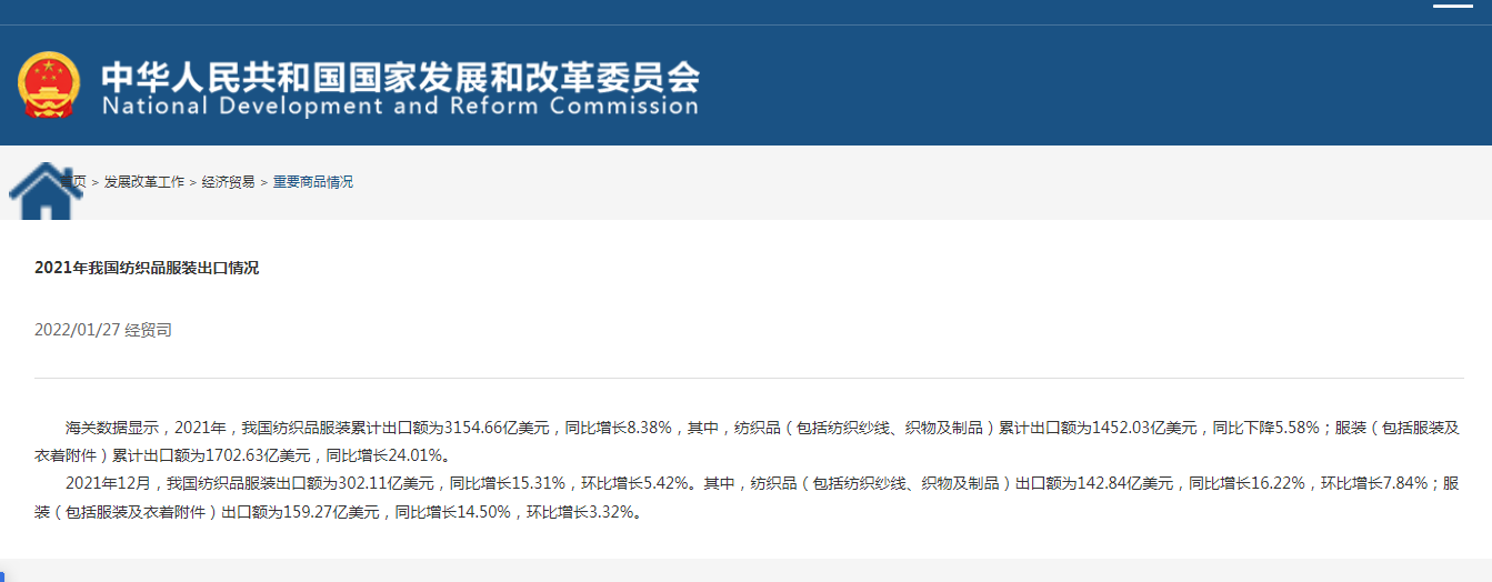 根據(jù)國家發(fā)改委官網(wǎng)2021年發(fā)布了一則紡織品行業(yè)出口數(shù)據(jù)可知:這兩年疫情影響,全球?qū)χ袊唐酚辛烁笮枨螅还苁欠酪呖挂呶镔Y還是服裝,都大量的從中國進(jìn)口。而服飾吊牌作為服裝包裝中的不可缺少的一部分,需求量也跟著上漲。